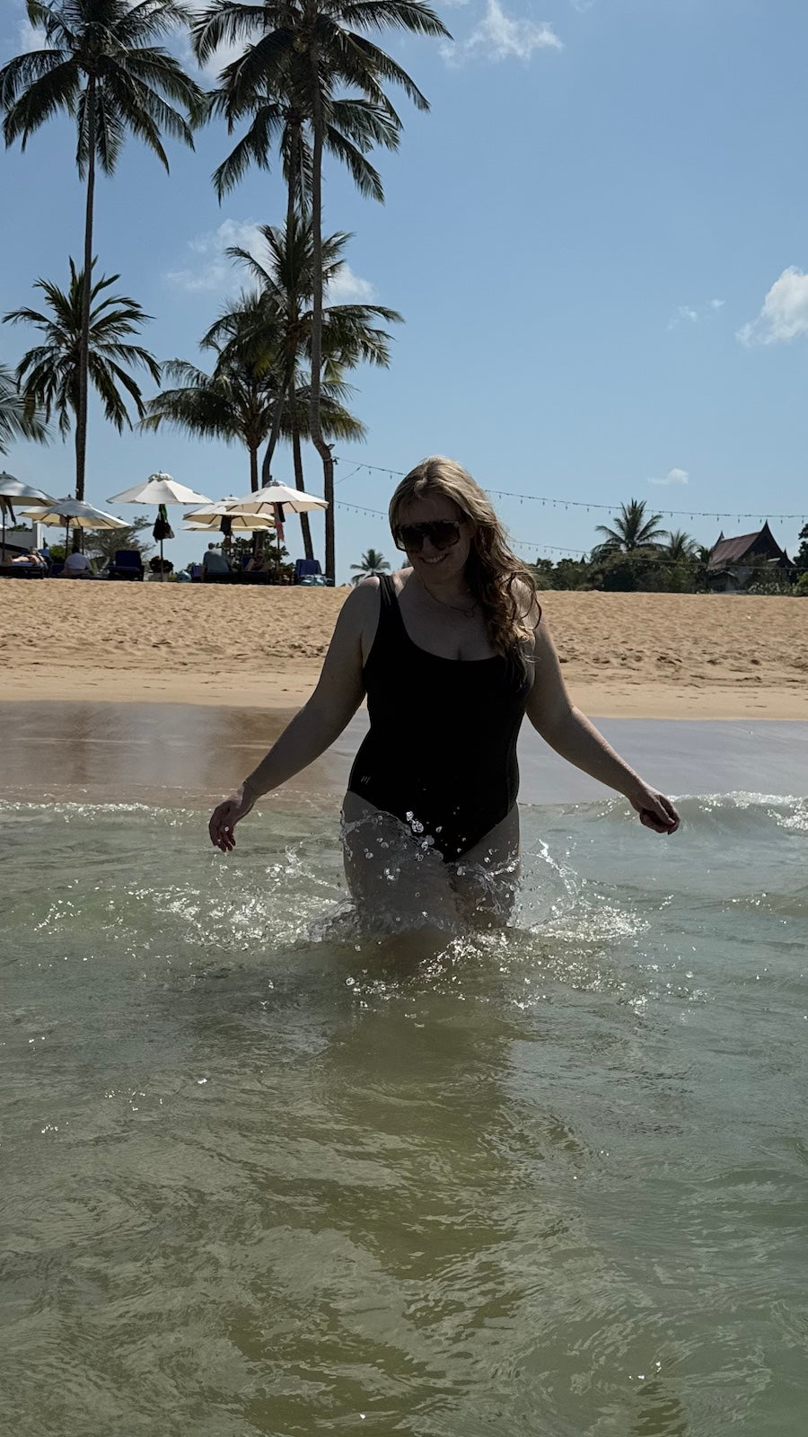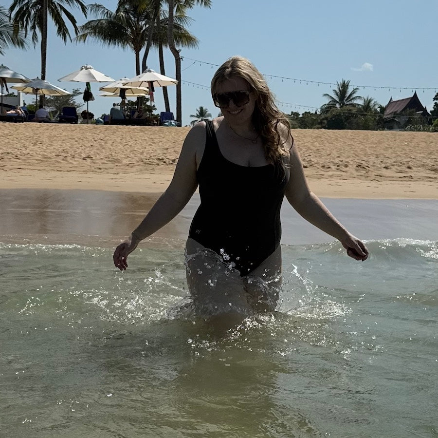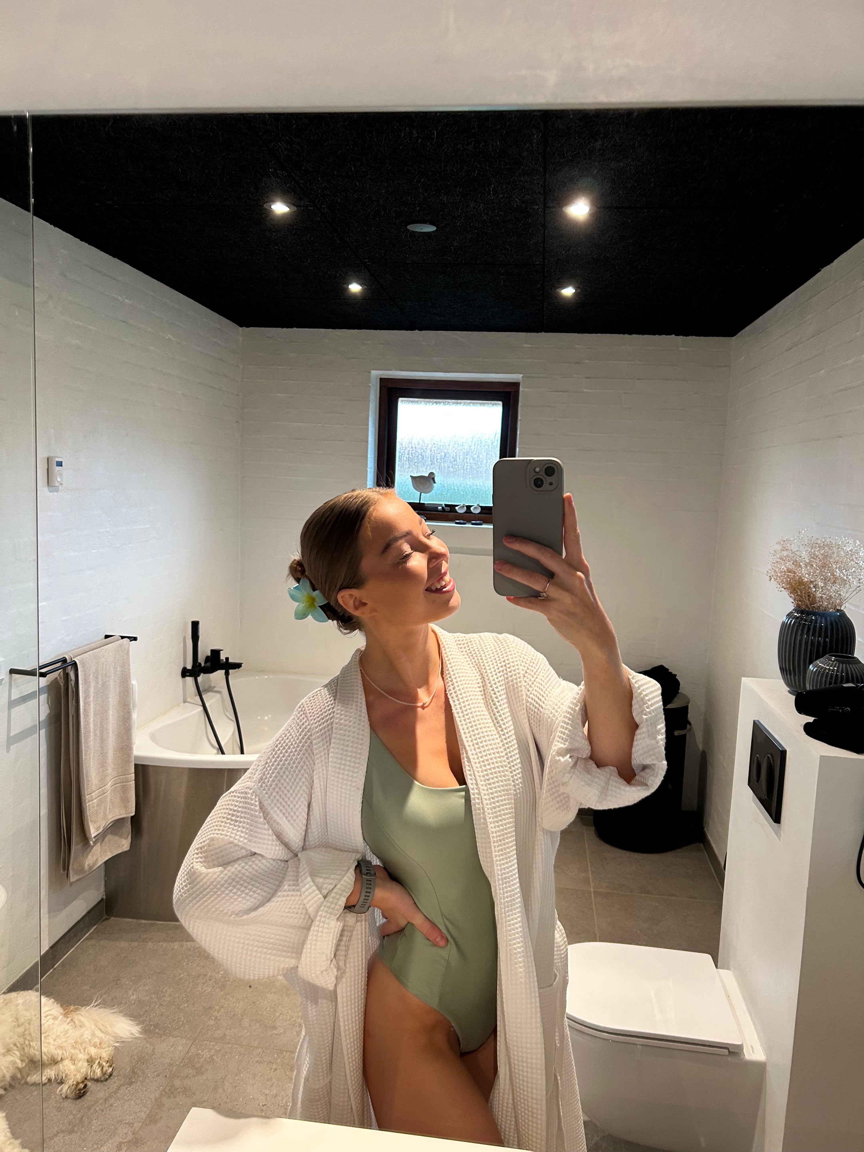 Our materials are softer than anything else on the market, and the silhouette of the swimsuit is cut with a focus on shaping the waist. Our design is also designed to fit different body types and also has a built-in bra system with replaceable pads. So you can largely tailor the swimsuit to your body.