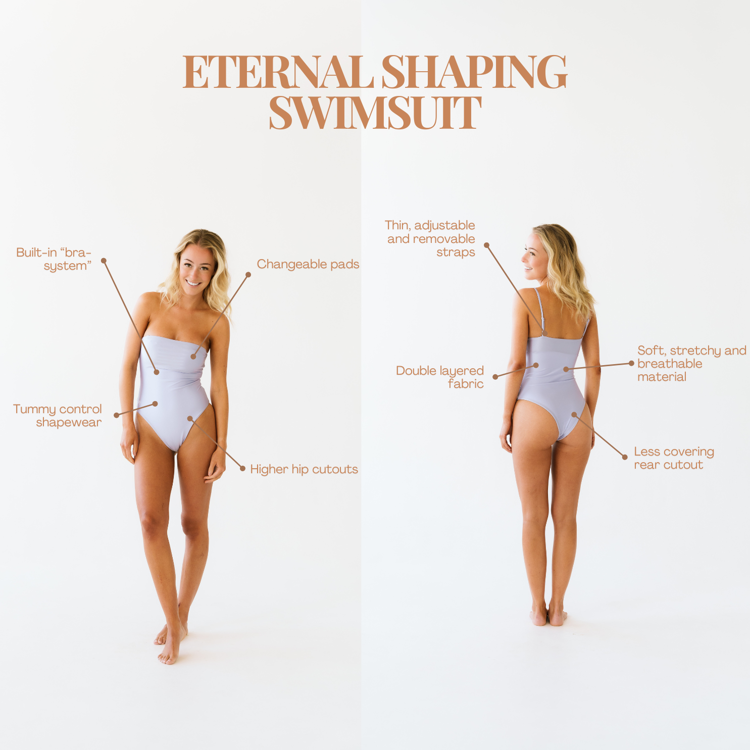 Eternal er badedragten, der forener tidløs elegance med uovertruffen komfort. Med indbygget shapewear, udskiftelige pads og aftagelige stropper, der giver dig mulighed for at tilpasse pasformen, former blidt den din krop og støtter uden at presse. Den giver dig både frihed og stil, så du kan føle dig velklædt, afslappet og smuk, præcis som du er.